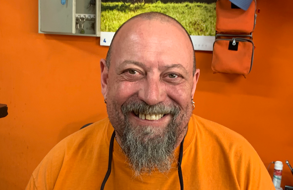 Das ist unser Retter. Er hat das defekte Fahrrad innerhalb von 60 Minuten repariert. Nun kann es weitergehen.