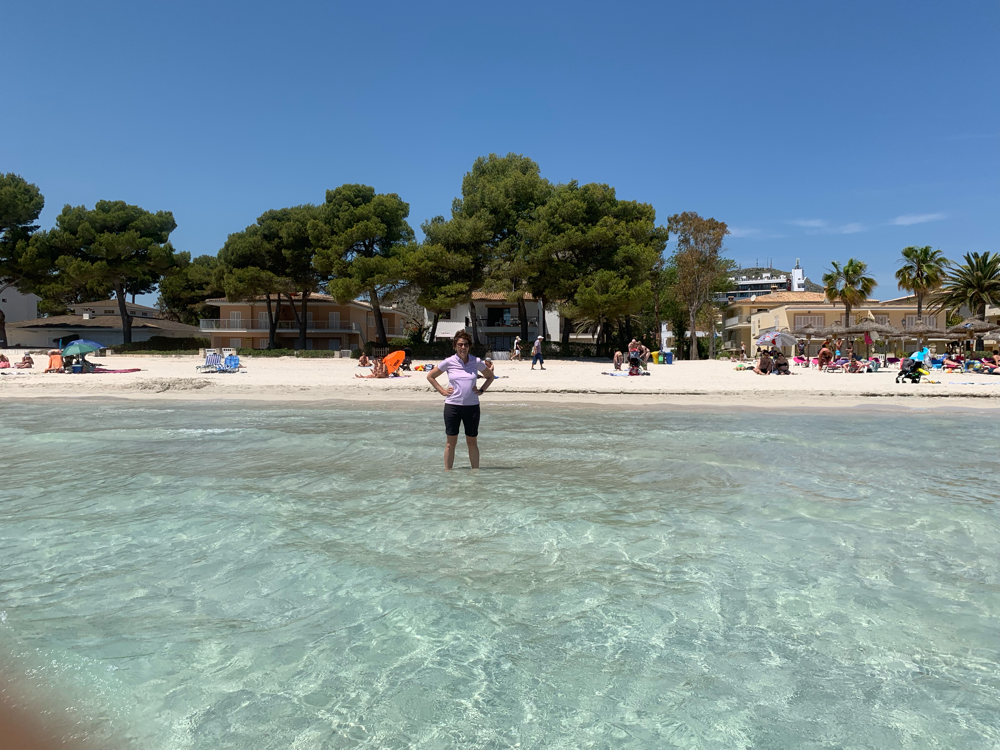 Das Meer ist so seicht in der Bucht von Alcudia. Man kann bis zu 500 m bequem hinein gehen.