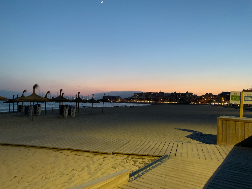 Wir merken ganz deutlich, dass noch Vorsaison ist. Der Strand am Abend menschenleer.