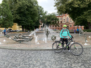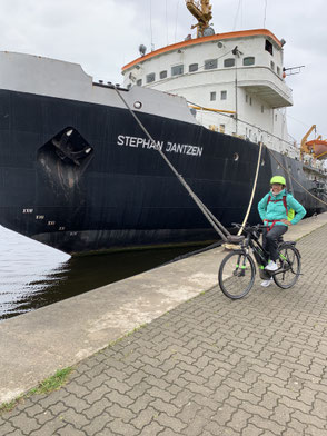 Das letzte Foto „Birgit vor Schiff“ war ohne Fahrrad, und im Hintergrund lag die AIDA.