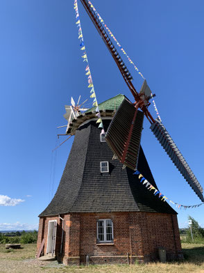Die Windmühle ist heute noch in Betrieb, man kann sie besichtigen und sie ist das Wahrzeichen von Groß Strömkendorf.