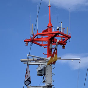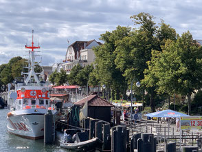Das Top des Seenotrettungskreuzers Arkona, im Hafen von Warnemünde.