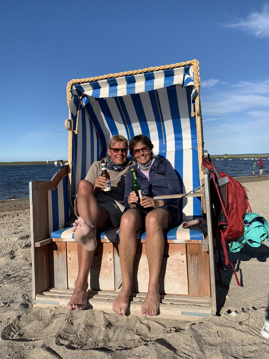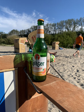 Ein letztes Bierchen am Strand - unser letzter Abend in Warnemünde.
