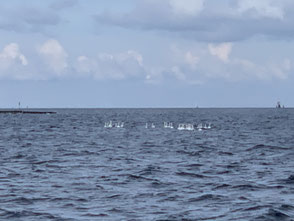 Eine Entenfamilie nimmt Kurs auf Poel.