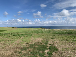 Wasser, grüne Felder und Steilküsten. Eine Erinnerung an Cornwall liegt nahe.