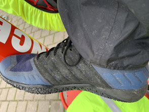 Eine teilweise feuchte, zum Teil recht schmutzige Tour geht zu Ende. Die Pfützen und Waldwege haben sich auf Hose und Schuhe verewigt.