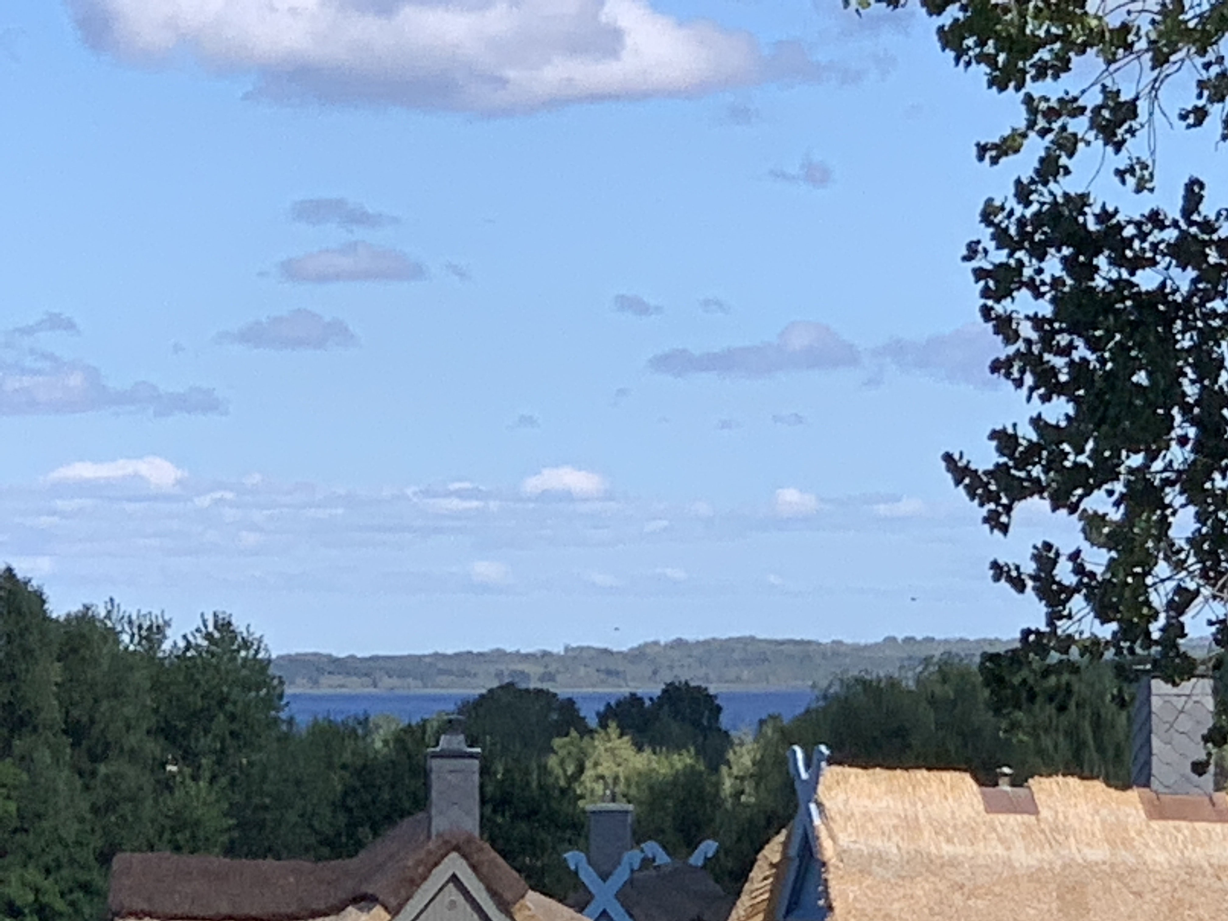 Überall lukt die Ostsee hervor. Die Reetdächer, typisch für die Region.